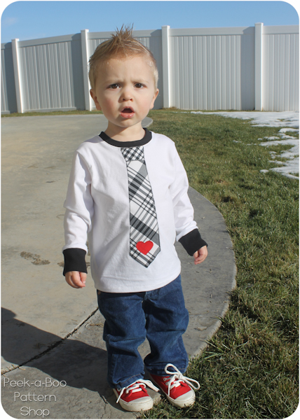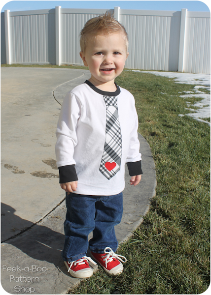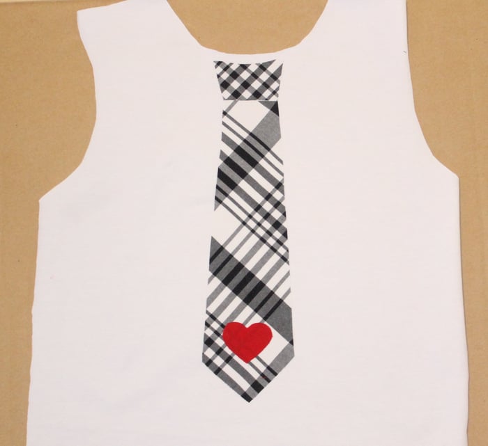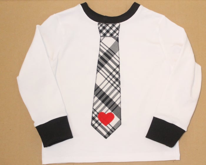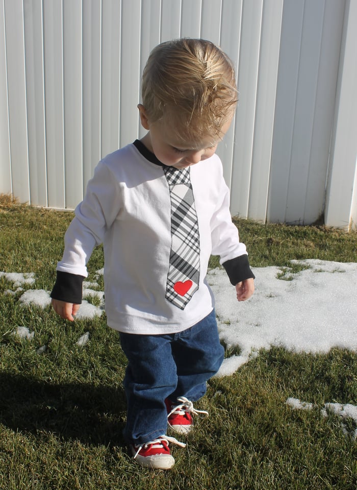 Let's do a tie applique! February will be here before we know it which means it’s time to think about Valentine’s Day!Don’t leave out the guys this year.They deserve something fun to wear too 🙂 This easy boys Valentine’s Day Tee adds just the right amount of class to any little guys wardrobe.