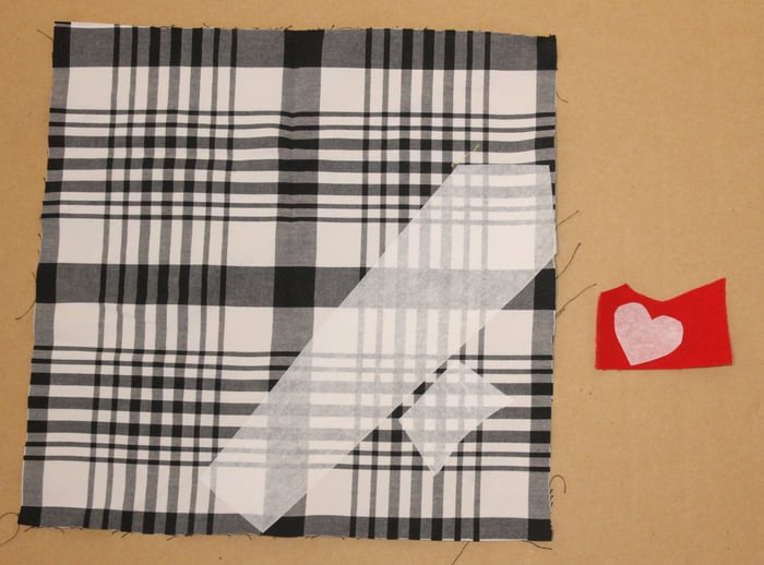 To applique the tie on I used double sided fusible interfacing.I cut out my interfacing using the pattern and then fused it to the wrong side of my tie and heart fabric.Next I cut out my pieces, peeled off the backing and ironed everything to the front tee piece.