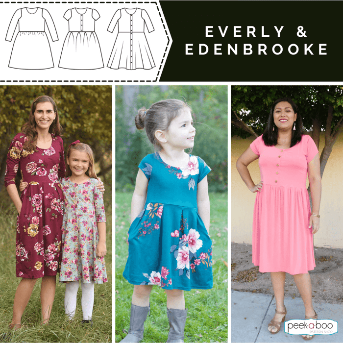 The Everly and Edenbrooke Dresses are classic, lined-bodice designs with lots of mix-and-match possibilities. Choose from pleated, skater, or gathered skirts and different sleeve lengths to create a casual or dressy look. Both patterns also feature button-front options, and the women’s version includes nursing-friendly access. These dresses are perfect for matching mom-and-daughter sets or simply building a versatile handmade wardrobe.