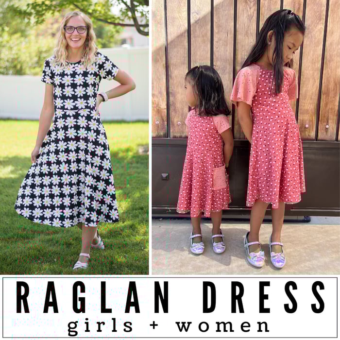 The Raglan Dress is a quick, easy sew in knit fabrics that’s packed with options. Both the women’s and girls’ versions include multiple sleeve choices, skirt styles, and optional pockets, making it endlessly versatile. The women’s pattern even includes a nursing option, while the girls’ version adds a playful hood. Comfortable, stylish, and easy to wear, this is a dress you’ll reach for again and again.