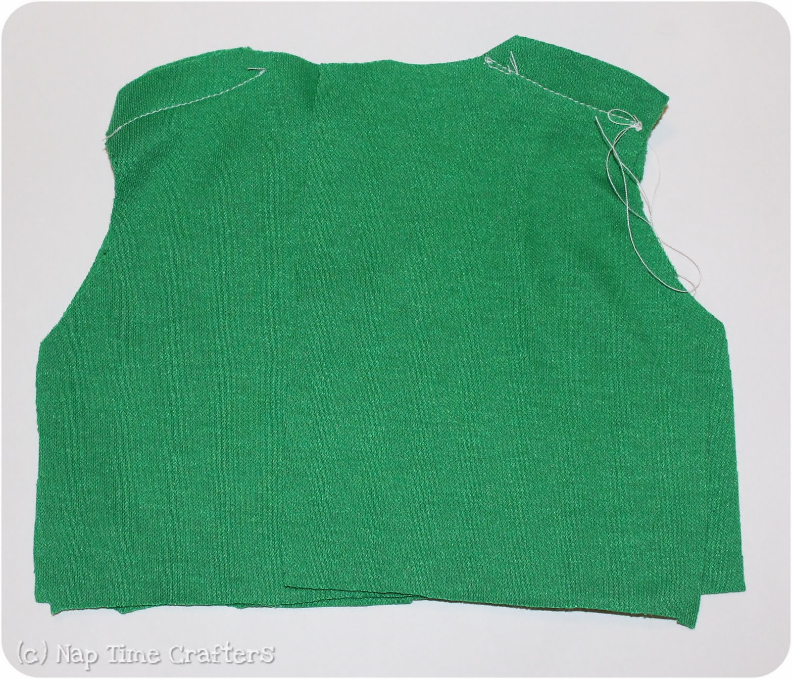 Step 1: With right sides together (RST) sew the 2 back pieces to the front at the shoulder seams