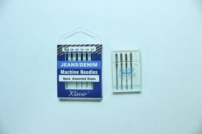 Choose the right sewing needle - Depending on the denim thickness, choose an appropriate denim/jean needle. Jean needles have an extra-sharp tip for penetrating thick fabric and a bigger eye to accommodate thicker threads. Use a 90/14 needle for light to medium-weight denim and a 100/16 or 110/18 for heavyweight denim. If you don't have any denim needles, universal needles work just fine and achieve neat stitches.