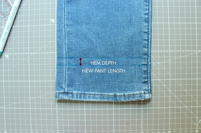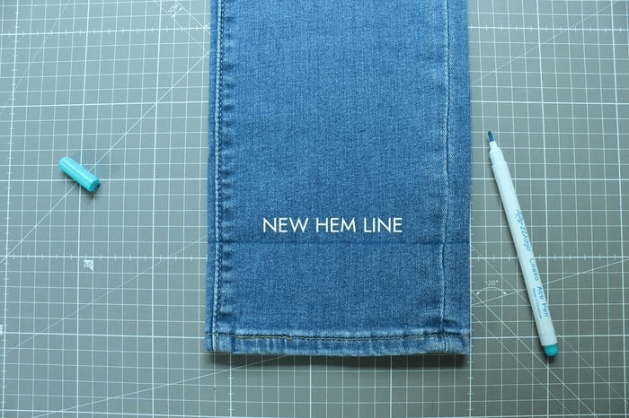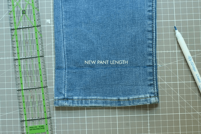 - Make sure these lines are the same on both pant legs; otherwise, you'll end up with uneven hems