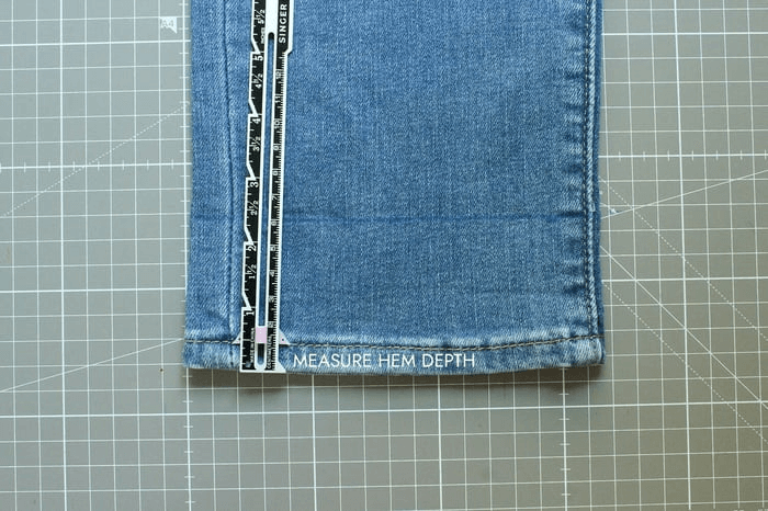 - Measure the depth of the original hem from the very bottom edge to the topstitching line (usually about ½ inch / 13mm)