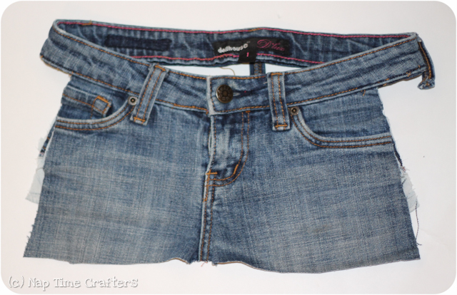 Denim Skirt Tutorial 1: I started with a size 1 pair of women's jeans. You want something with a fairly short fly if you're making these for a toddler.