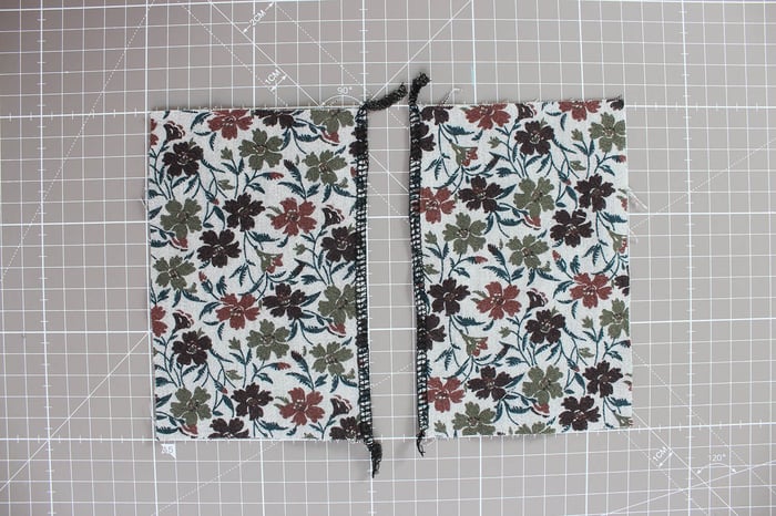 - Pin your fabric panels with the right sides together. Take a ruler or a measuring tape and mark the end of the closed seam which is going to be where the slit starts.