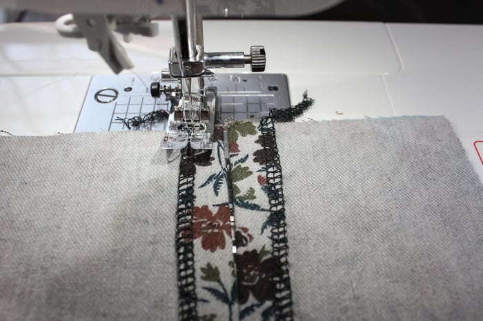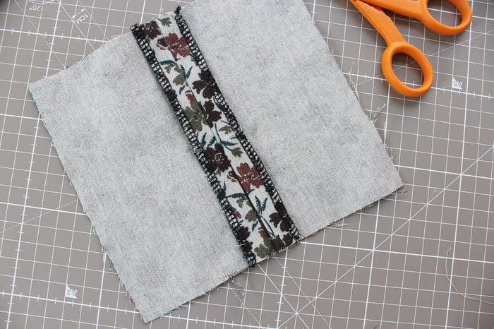 - From the wrong side of the fabric, edgestitch close to the folded edges all around the fabric strip and press in place.