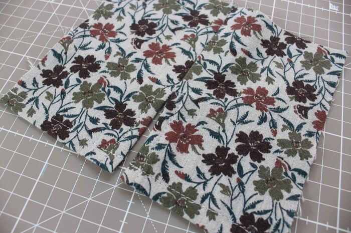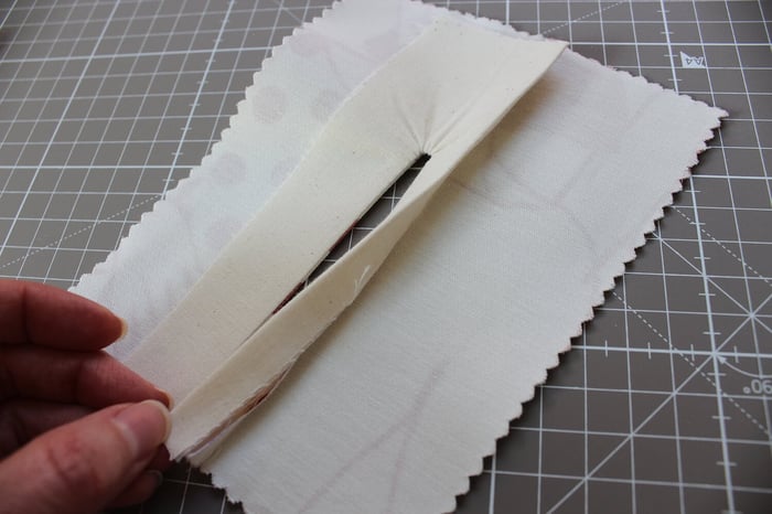 - Next, fold the seam allowance raw edges on each side so that they’re fully enclosed. Press in place and secure with pins if necessary.