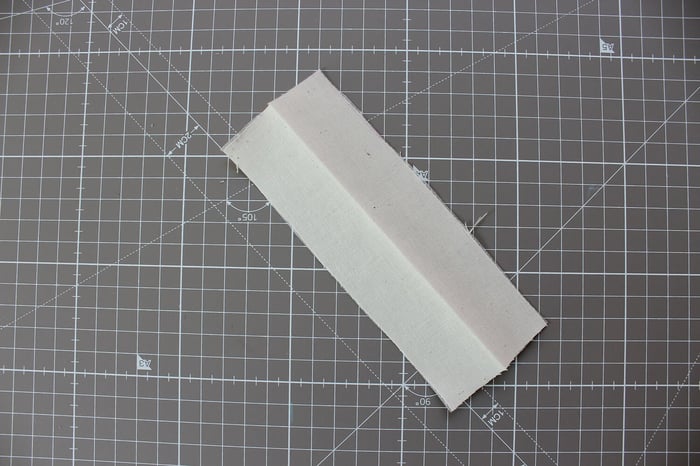 - Lengthwise, fold the fabric strip with the wrong sides together and press.