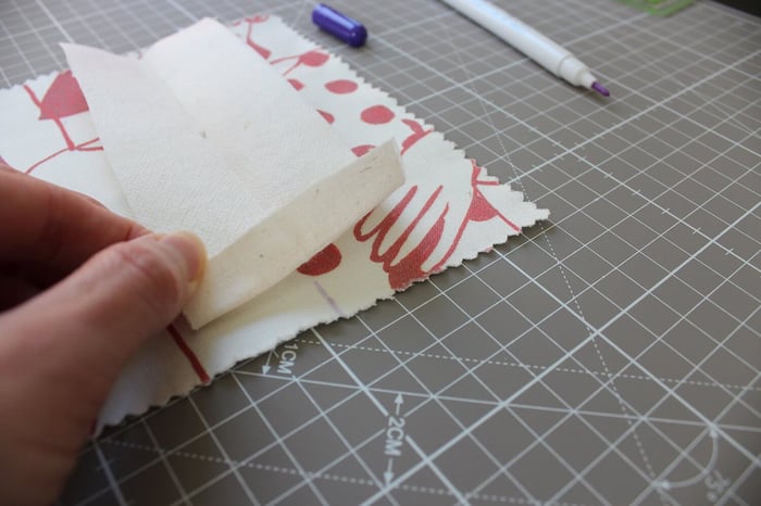 - Using the slashed line, turn the strip toward the wrong side of the fabric and press it in place so everything is flat.
