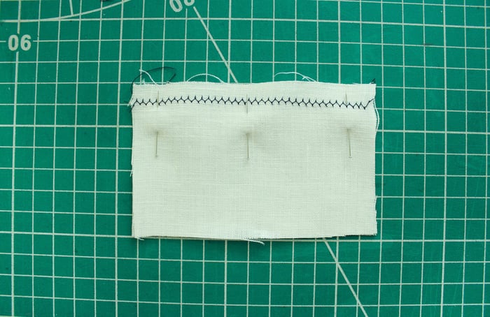 - If fabric edges are to be finished separately, then apply the zigzag stitch along each edge first. Apply a zigzag stitch at about 0.5- 1 cm (1/4- 3/8”) away from the raw edge on both fabric panels.